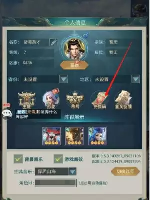 2.在个人信息中点击兑换码选项。
