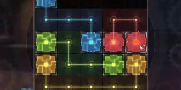 2、进入解谜玩家需要将对应颜色的方块进行连接,切连线不重叠,正确的解谜如下图所示。