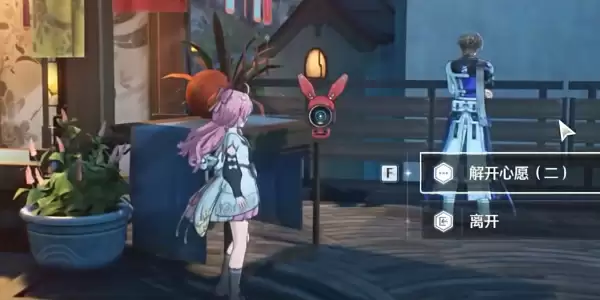1、和摊位旁的小帕进行对话,选择“解开心愿二”。