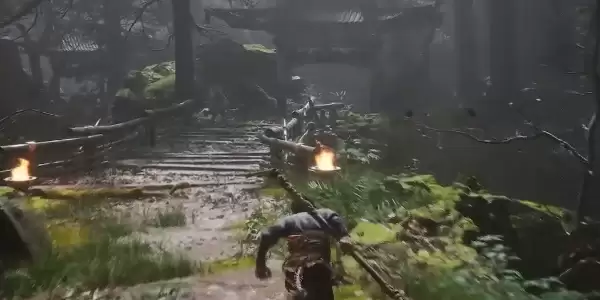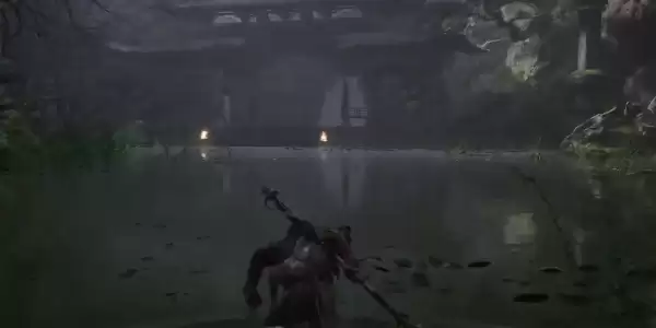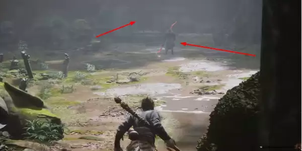 2、穿过竹桥,进门可以遇到黑风山的头目广智和一口大钟。击败广智后,拾取他的武器获得【法术】赤潮(战斗时可变身狼妖),然后敲响附近的大钟。