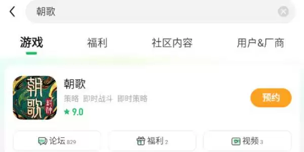 2.安装完成软件以后点击进入,在上方搜索栏搜索朝歌,随后点击右侧的预约即可。
