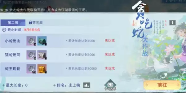 贪吃蛇大作战梦幻联动,带来国民级玩法的一梦江湖特别版!小蛇将穿上门派校服,遨游在江湖的每个角落,努力成长为最长的蛇蛇!在活动中,少侠的单局长度将计入排行榜中。每周五结算,上榜可得绝版称谓“江湖蛇王”。少侠们可拉上好友一起参与!完成每周的玩法任务,可获“仲夏通宝·普”及节日宝箱,每周五的五点将会刷新奖励。完成本期节日逸谭亦可获得逸谭积分,在逸谭市集中兑换好礼。