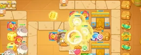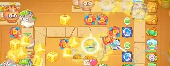 2、在左侧建造一个骰子和一个鞭炮,集中火力清理右上方的道具。