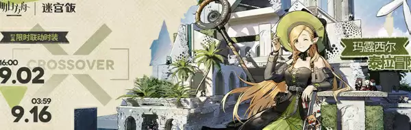 2024年9月2日16:00~2024年9月16日03:59活动期间以下干员新增时装将在时装商店上架并进行限时贩售:【CROSSOVER】系列-“泰拉冒险”-玛露西尔。