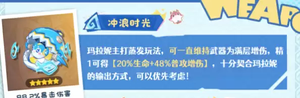 玛拉妮主打蒸发玩法,可一直维持武器为满层增伤,精1可得【20%生命+48%普攻增伤】,十分契合玛拉妮的输出方式,可以优先考虑!