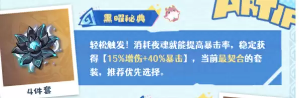 4件套:装备者在场上消耗1点夜魂值后,暴击率提高40%,持续6秒。该效果每l秒至多触发一次。