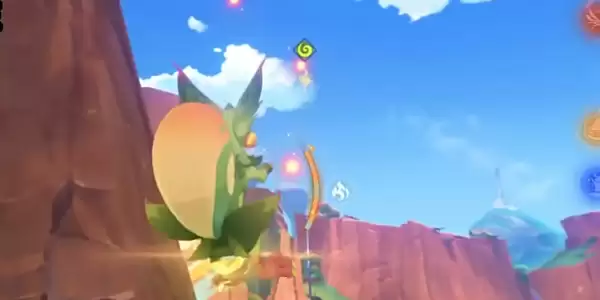 5、接着和潘帕对话,选择接收挑战,我们变身为匿叶龙,通过印记在空中飞翔,并收集一定数量的微粒。