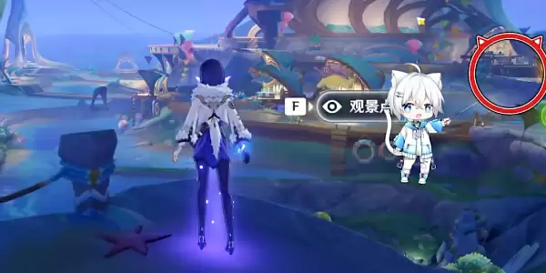 2、跟随任务指引玩家来到岛上启动两处燃素节点,其中一处节点在高空中,玩家可以击碎旁边的石堆出现一处机关,攻击一下机关既可以出现一条道路。