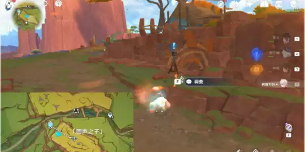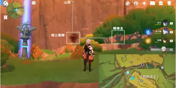 1、玩家传送到纳塔「回声之子」部落附近的七天神像,往地图的东南方向走,附身嵴锋龙的龙魂,然后进入熔土裂隙,前往山顶。