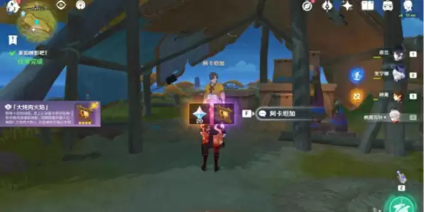 4、最后完成上述三个步骤后,与阿卡坦加对话结束,就可以完成任务「来拍映影吧!」。