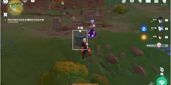 3、将敌对角色引至木桶附近并击碎木桶:待雷史莱姆靠近木桶时,攻击木桶。