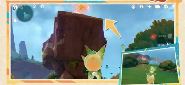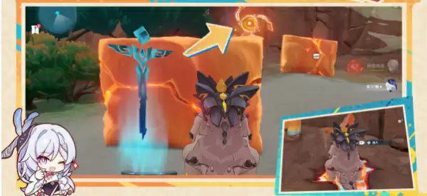 6、来到海岛东北边的岸边,附身峭锋龙开启面前的挑战,挑战中玩家需要关闭面前的机关,然后进入裂隙来到山顶触碰铭印即可。