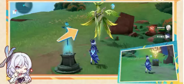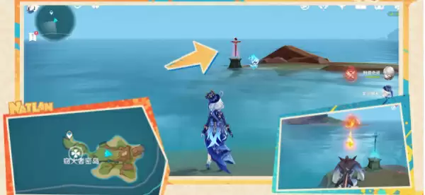 4、接着来到海岛西南边,附身鳍游龙,开启挑战,需要玩家关闭面前的机关。