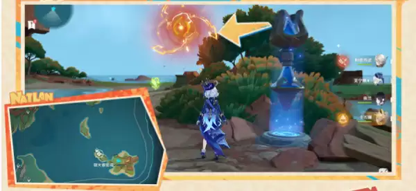 1、来到纳塔地图东南侧的海岛,先附身匿草龙,靠近并关闭面前的机,地图上才会出现岛屿的地图。