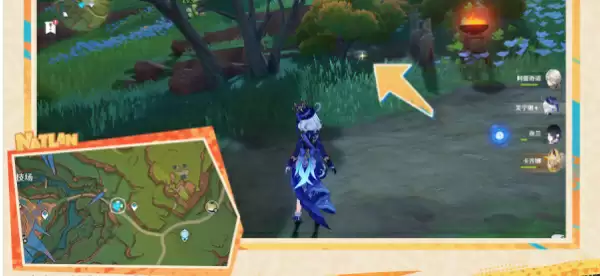 2、来到圣火竞技场东边,拾取草丛里的快件。