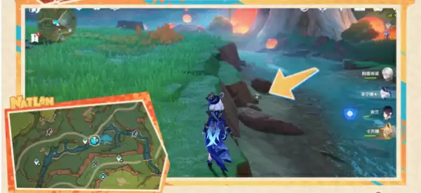 3、来到【悬木人】西边,拾取河边石头上的快件,位置如下图所示。