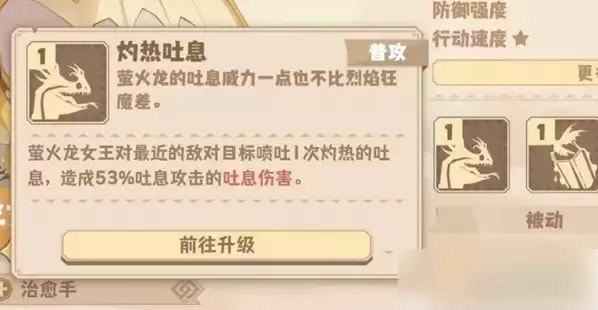 最后萤火龙女王还有一个提升10%吐息攻击的被动和增加18%体力恢复速度的特性,前者能够进一步加强萤火龙女王的输出能力,并间接提升技能的治疗量,后者的话则可以帮助它和其他同处龙憩长屋的龙体力恢复的更快。