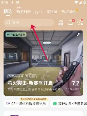 1、打开好游快爆后,点击首页1上方的搜索框进入搜索界面。