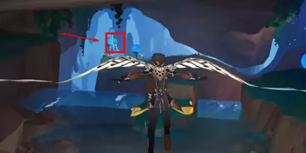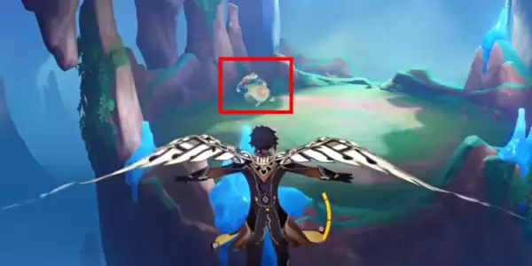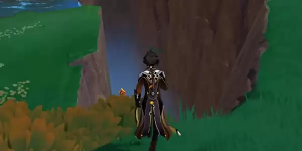 2、离开传送锚点后视角转到西南方向,然后跳下眼前的峡谷,途中还可以顺手拾取一个火神瞳。