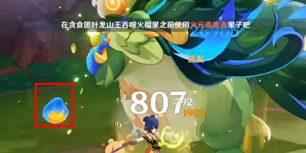 5、最后在挑战时山王的周围会掉落一些火榴果,我们需要使用火元素角色将这些果实全部点燃,然后等它们爆炸就可以解锁成就【你也是迪诺巴鲁托】。