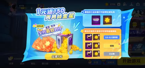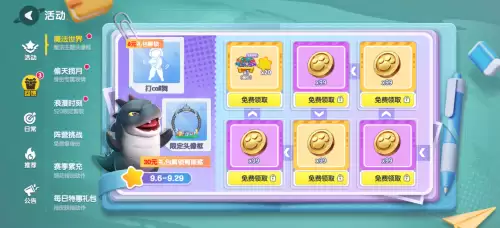 每个周末,船员们可以参加疯狂幸运星活动,在疯狂周末商店活动内免费领取幸运星*5,同时,在幸运星活动中,周末登录游戏并完成1局对局,即可额外领取幸运星*12。每周末记得来游戏里按时打卡!