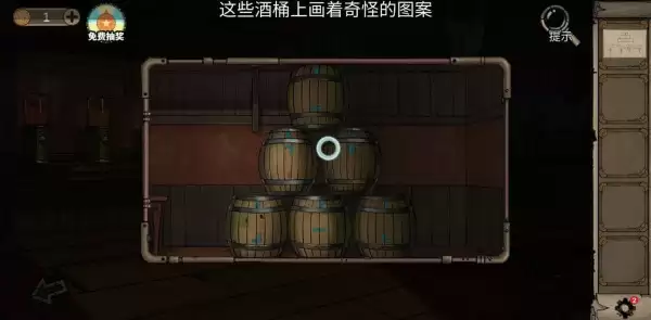 进入三号房,左边门下方有张纸条,和右边门里的酒桶对应