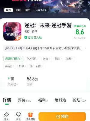 打开好游快爆app,搜索逆战未来,然后点击预约按钮完成预约,接着完成相关的问卷填写就有机会获得测试资格。