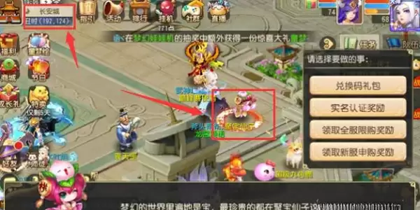 1、登陆进入梦幻西游手游界面,打开左上角地图在长安城地图找到聚宝仙子并点击它;