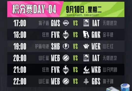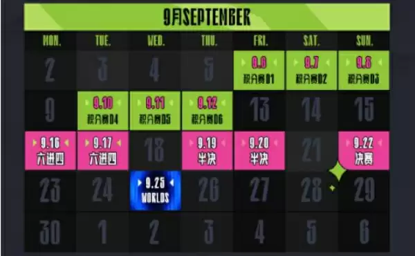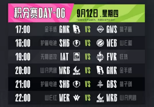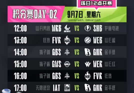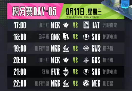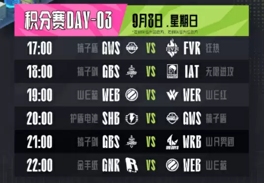 积分赛:9月6日~9月8日、9月10日~9月12日