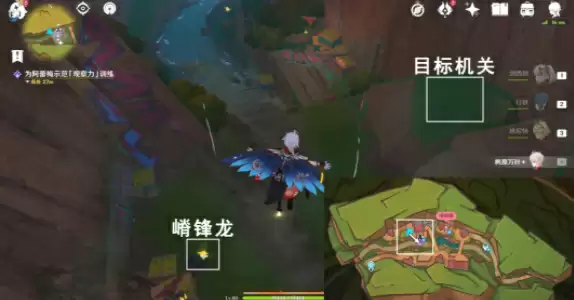 2、往地图的东南方向下飞,附身嵴锋龙,使用战技钻地,往地图的南方向走。
