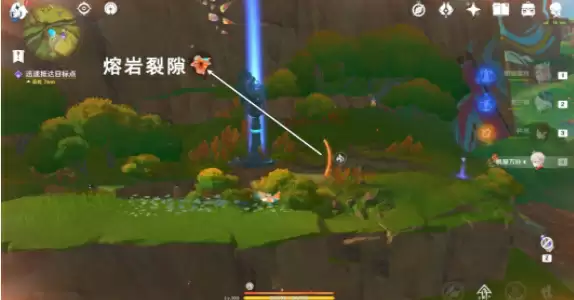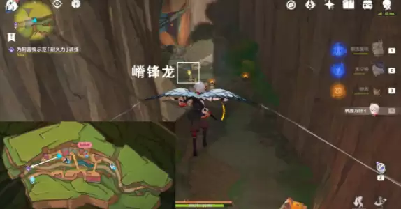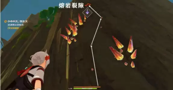 2、往地图的东南方向下飞,附身嵴锋龙,然后使用战技钻地,按指引路线爬,进入熔岩裂隙。
