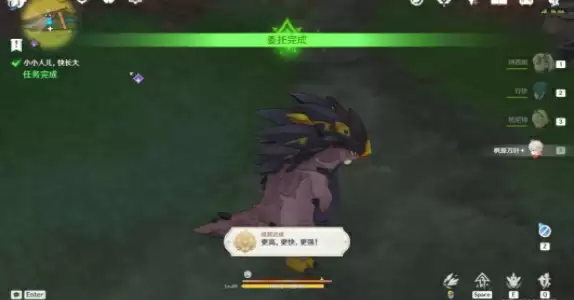 4、最后对话结束,完成任务「小小人儿,快长大」,并且获得成就【更高,更快,更强!】。