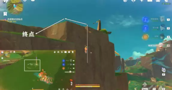 3、接着抵达山顶,前往侧面的终点,与阿蕾梅对话。
