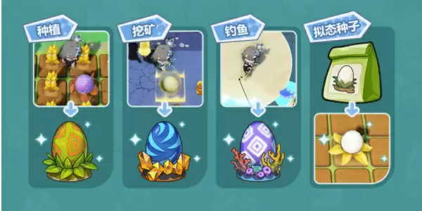 为了还原世界泡的生态,舰长需要种植、挖矿、钓鱼……在这个过程中,舰长会偶然获得变异出来的化石。除此之外,当埋下拟生兽拟态种子,按照种植植物的方式对待它们,也可以获得类似的化石!