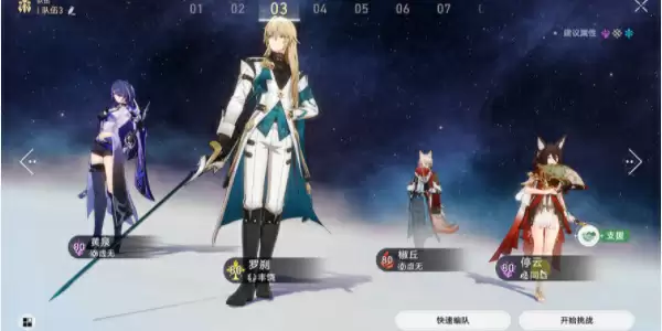 1、在配队中我们选择椒丘、停云,如果玩家缺少其中一个角色可以选择在支援列表中借用。