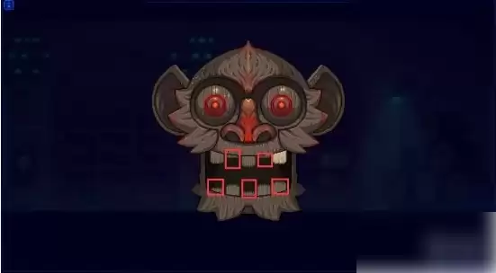 然后交互左边墙上的猴子面具,出现小游戏。这个游戏需要我们把猴子的牙齿按下,参照刚才看到的十字绣,把带叉的对应的牙齿按下去。