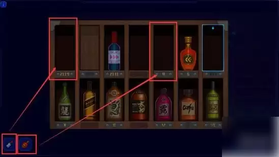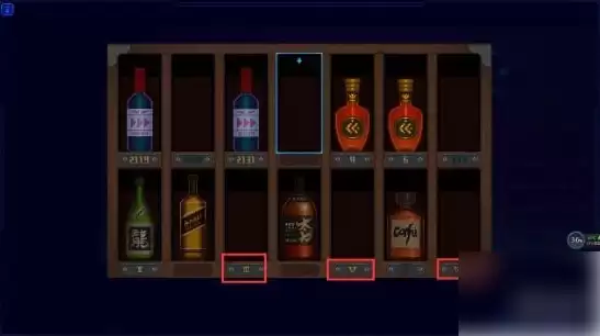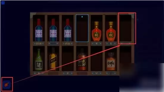 然后来到房间最左边的酒柜,交互触发小游戏。把两瓶酒分别放入下图对应的位置中。