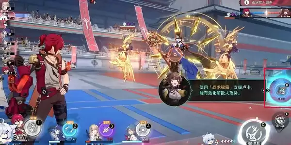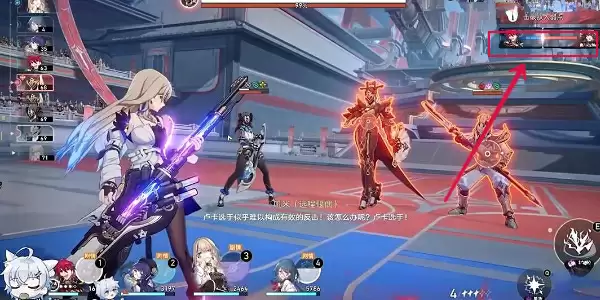 5、当我们右上角的战斗条满格后我们可以使用剧情角色进行输出,如果战斗条没有满我们就选择破旁边小怪的弱点。