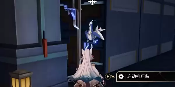2、离开锚点后我们向前直走,和前方的机巧鸟交互对话。