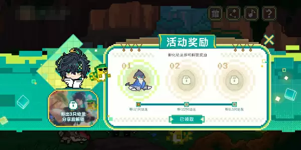 玩家选择龙蛋后,通过不同操作成功孵化出幼龙即可领取原石、角色突破材料等游戏奖励。