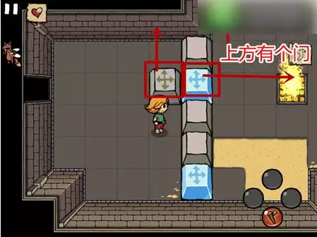 8、和NPC一段对话后可以到古城楼顶,又有个宝箱里面是碎片道具,然后回到上一个房间取火,快速到楼顶将前面3个格子移开。