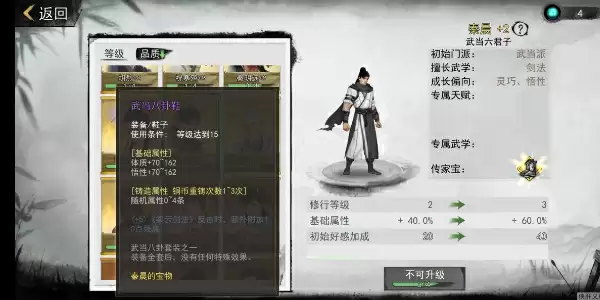 武当派可以先尽量号召品质高,但等级低的角色,来获得仁义值仁义值高了后,反过来可以加成号召的成功率。