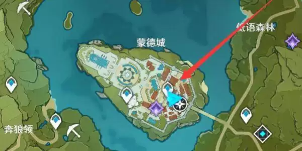 传送到蒙德城内,在喷泉对面找到猎鹿人餐馆。