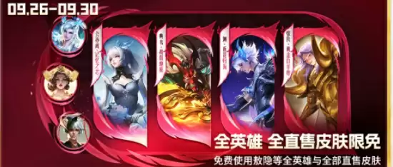 2、包含敖隐、武则天在内的全英雄和全直售皮肤限时免费体验 。