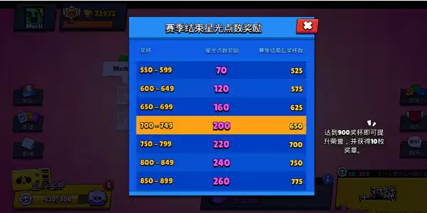 游戏在竞技分的设定上,采用了另一套规则。玩家的杯数(其他游戏的排位分)变为了所有英雄匹配时的杯数之和。
