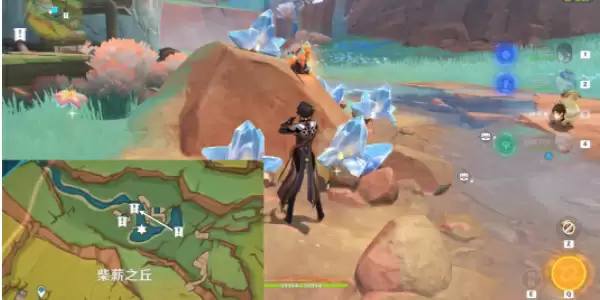 2、接着往地图的西北方向走,使用岩元素/大剑角色,攻击地上的全部萃凝晶。
