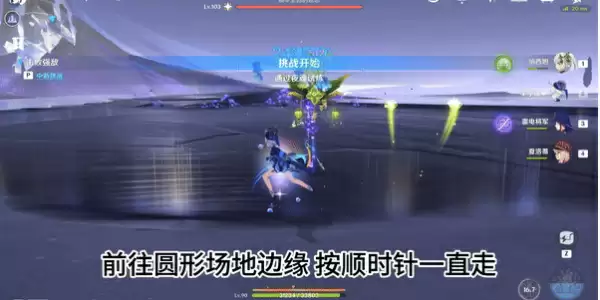 进入试炼首先草神挂草,雷神挂雷,水神召唤挂水,然后前往圆形场地边缘,按顺时针一直走,这时庇护的所有技能都打不到我们,最后我们全程靠水神的3个小伙伴和草、雷元素来打反应伤害。