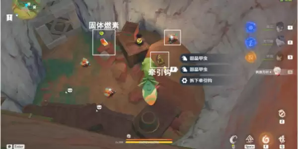 1、传送柴薪之丘西方向锚点,往地图的东北方向走,附身匿叶龙,使用匿叶龙战技,拾取固体燃素。