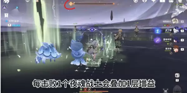 前往试炼场地中间,等待传送门出现,在传送门附近会吸引夜魂战士过来,然后将其击败,每击败1个夜魂战士会叠加1层增益,我们可以可通过界面正上方的数字来判断具体击败了几个夜魂战士。