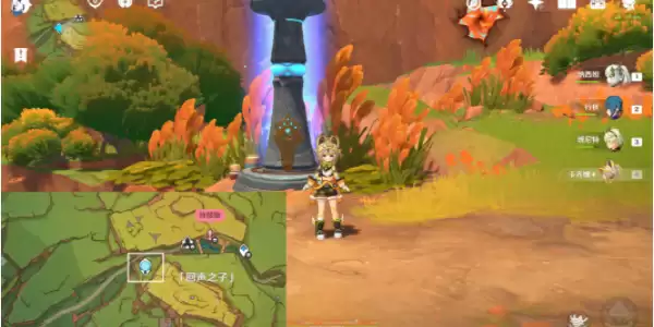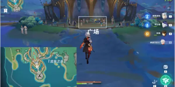 1、传送曜石图腾柱·「流泉之众」锚点,往地图的北方向走,来到下图所示的广场。